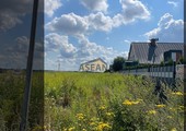 Szerokość działki od strony drogi ok. 24 m. Kształt trapezu.