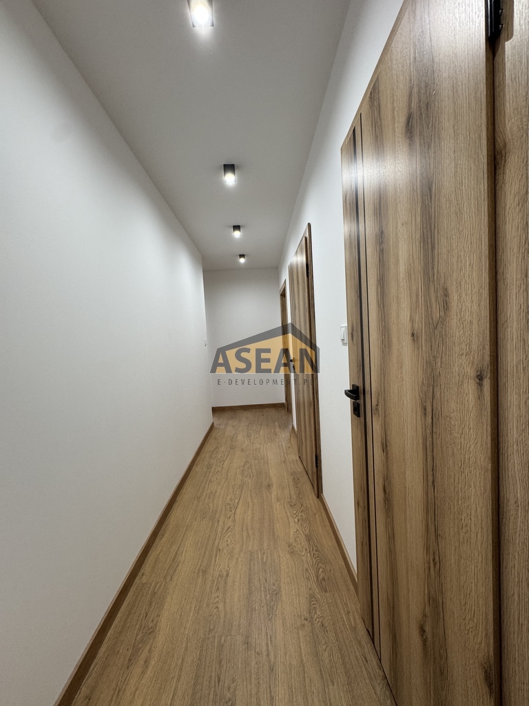 Do wynajęcia mieszkanie w kameralnym, nowym budynku z 2025 r. Powierzchnia 86m2, 4 pokoje (salon z aneksem kuchennym, 3 sypialnie), 2 łazienki, 2 garderoby, pomieszczenie gospodarcze z pralnią. Stan umeblowania zgodnie ze zdjęciami. Czynsz najmu + opłaty za media. W cenie miejsce w garażu podziemnym.