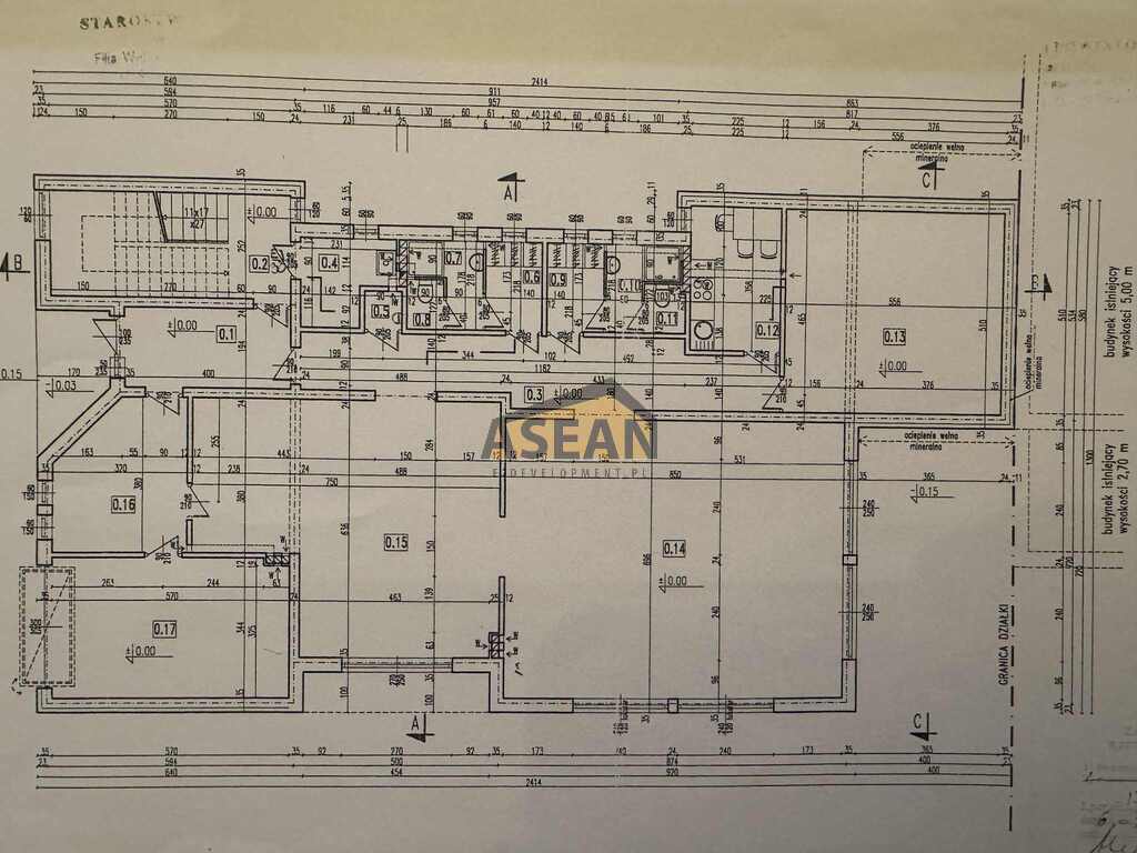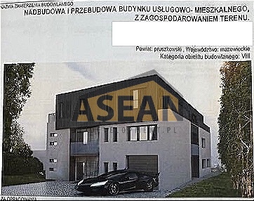Budynek mieszkalno-usługowo-produkcyjny 422 m2 (z prawomocnym i ważnym pozwoleniem na budowę kolejnego piętra mieszkalnego + 220 m2, po nadbudowie pow. wynosiłaby 642 m2). Budynek zlokalizowany w Raszynie - Rybie. Powierzchnia działki 660 m2. Budynek wybudowany w 2004 r., z częścią mieszkalną oraz usługową, o powierzchni 422 m2 na 2 kondygnacjach. Na działce parking z frontu budynku, na podjeździe. Okna PCV, w budynku na podłodze gres, na dachu blachodachówka, budynek ocieplony. Media miejskie kanalizacja miejska, woda miejska, ogrzewanie na piec gazowy, na piętrze wykonany system rekuperacji, w głównych pomieszczenia na parterze i na piętrze - klimatyzacja. Opis stanu istniejącego budynku Powierzchnia użytkowa 422 m2. Parter wysokość pomieszczeń 3,2 m2, pokój biurowy, powierzchnia produkcyjno-usługowa, pomieszczenia socjalne, 2 łazienki pracownicze damskie i męskie), garaż. Piętro powierzchnia open space, powierzchnia produkcyjna, duża powierzchnia pomocnicza do procesu produkcji, 2 łazienki. Budynek posiada prawomocne i ważne pozwolenie na budowę kolejnego piętra - mieszkalnego o pow. 220 m2 - w planie pokoje - każdy z osobną łazienką.