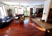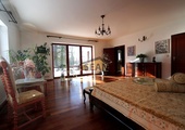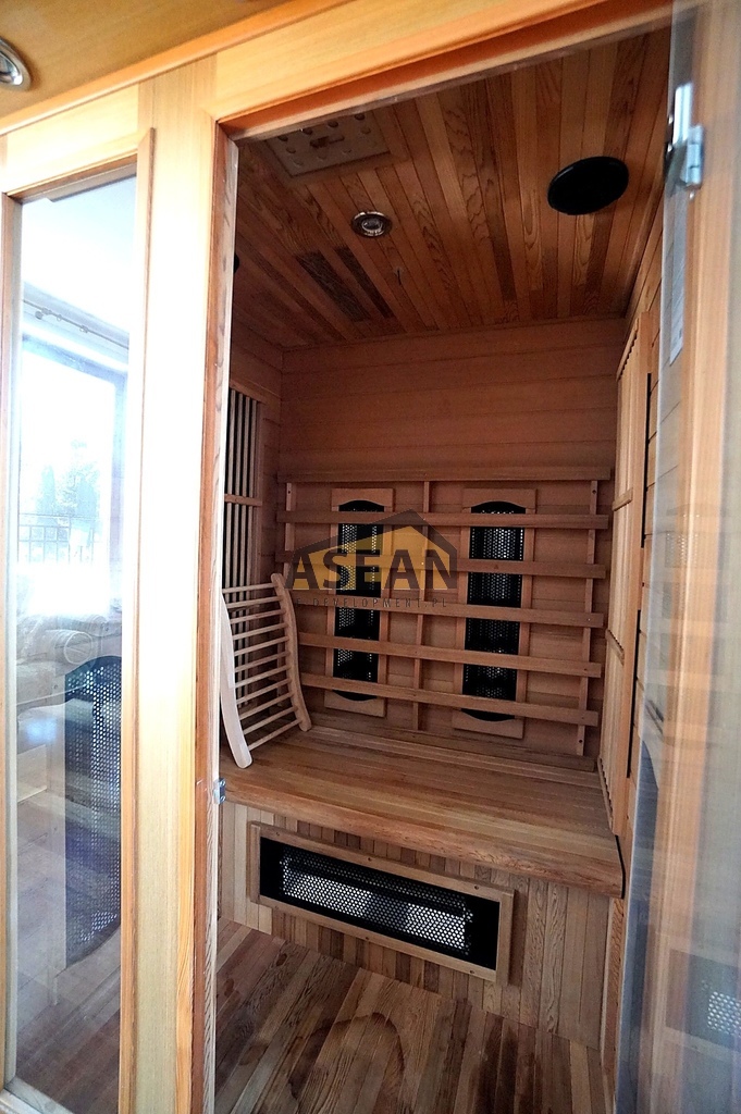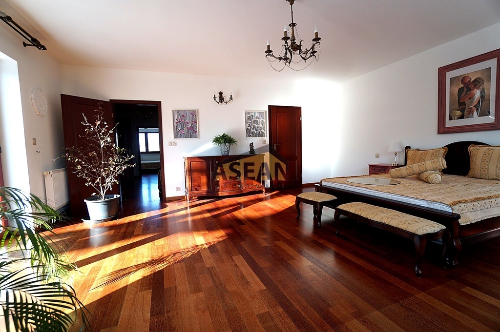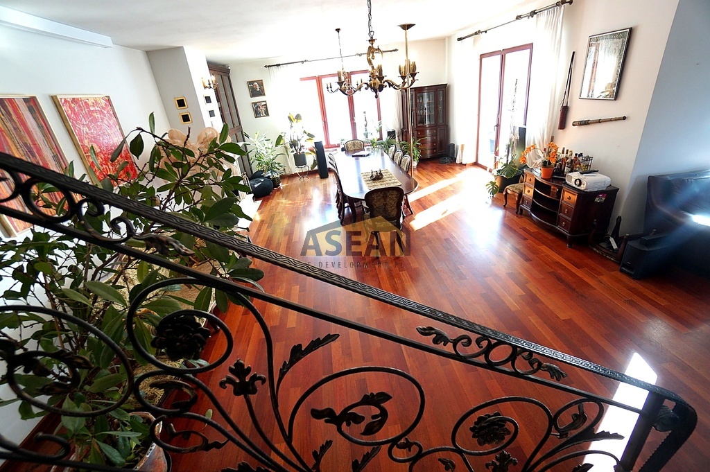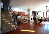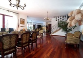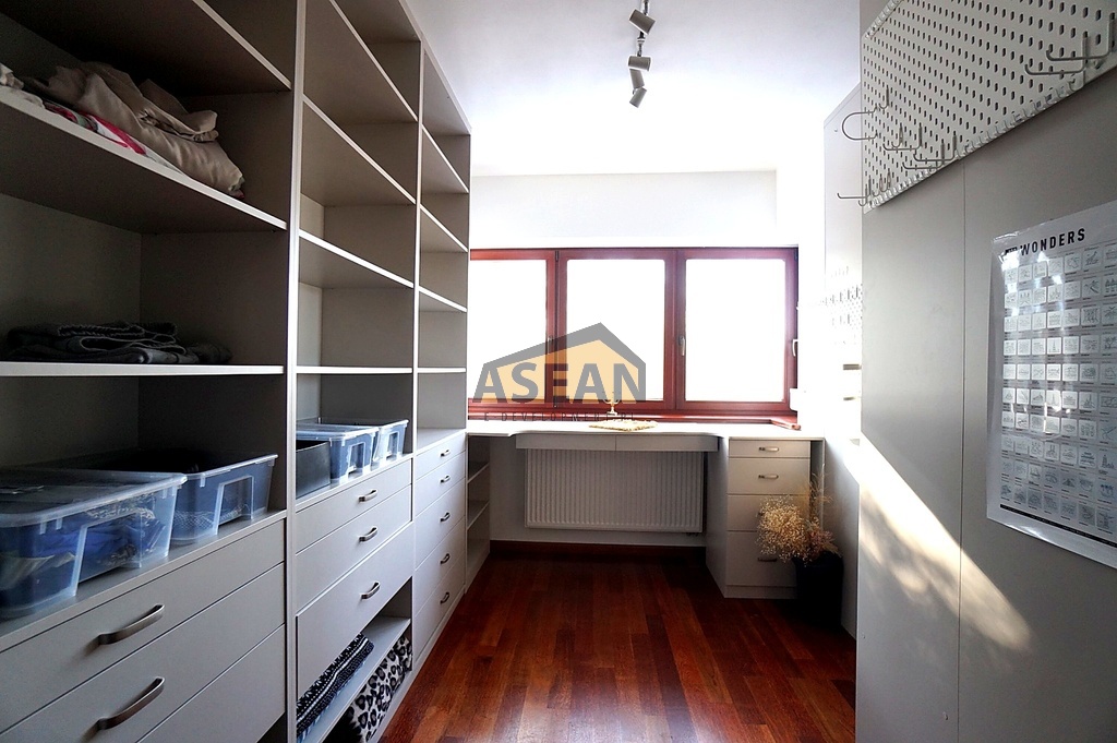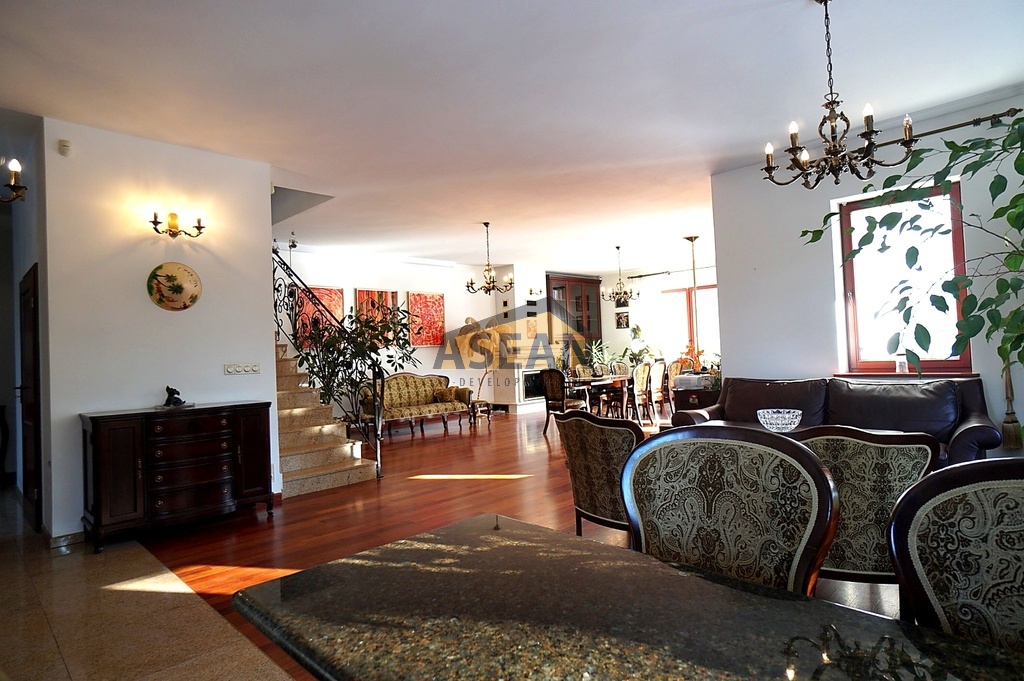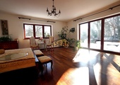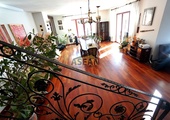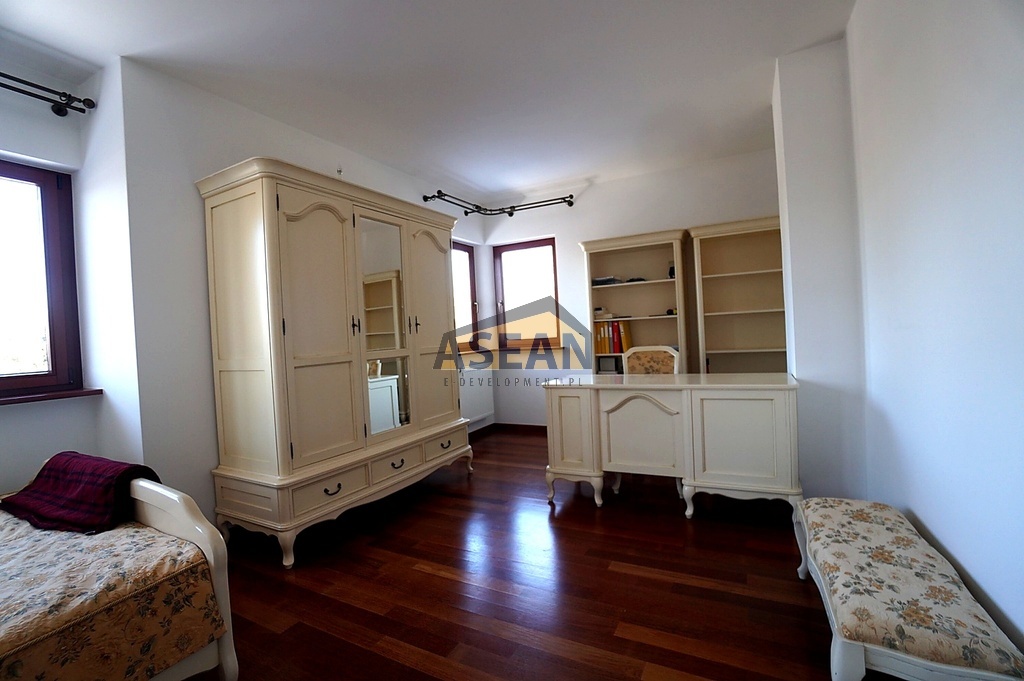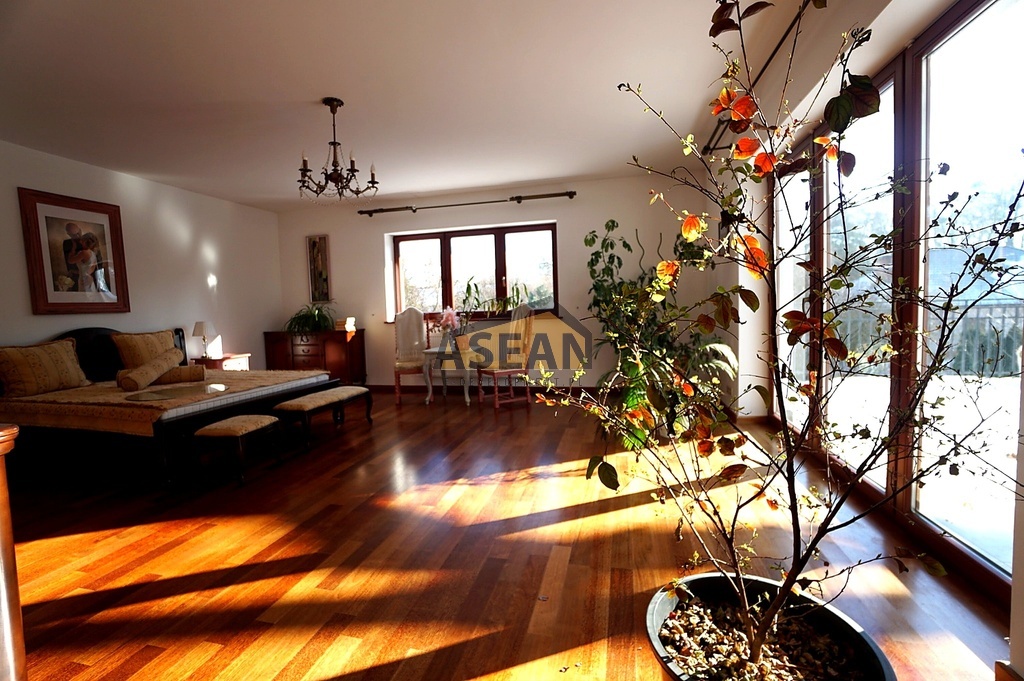 Na sprzedaż rezydencja - dom wolnostojący w Magdalence, wybudowany w 2010 r., wykończony w późniejszych latach w wysokim standardzie. Powierzchnia domu 265 m2 + garaż (łączna powierzchnia z garażem 305 m2). Powierzchnia działki 1000 m2, ogród zaprojektowany przez znanego projektanta, z egzotycznymi roślinami, na działce dodatkowo naziemny basen (na podbudowie betonowym)na słoną wodę, oświetlenie zewnętrzne w 2 systemach punktowy pod drzewkami oraz naziemne przy krzewach ogrodowych. Media woda miejska, kanalizacja miejska, ogrzewanie na piec gazowy. Na podłodze wysokiej jakości drewno egzotyczne, okna i drzwi również z drewna egzotycznego. Meble wykonane na wymiar z litego dębu. W salonie kominek z marmuru, kino domowe. Ogrzewanie podłogowe. Elementy kute w domu wykonane na zamówienie przez zawodowego kowala. Parter garaż w bryle domu na 2 auta, z kotłownią. Obszerny open space złożony z salonu (z kominkiem i wyjściem na tara, z kinem domowym), część wypoczynkowa, aneks jadalny oraz kuchnia otwarta. Pralnia z suszarnią, WC. Półpiętro duży pokój (może być wykorzystany na gabinet, sypialnię - w chwili obecnej wykorzystywany jako pokój saunowy - zamontowana sauna sucha. Piętro Master bedroom z wyjściem na duży taras, łazienka małżeńska (z wanną i kabiną prysznicową), 2 duże pokoje (jeden wykorzystywany jako zabudowana garderoba, drugi jako gabinet z sypialnią), łazienka ogólna (różowy marmur, z wanną i kabiną prysznicową).
